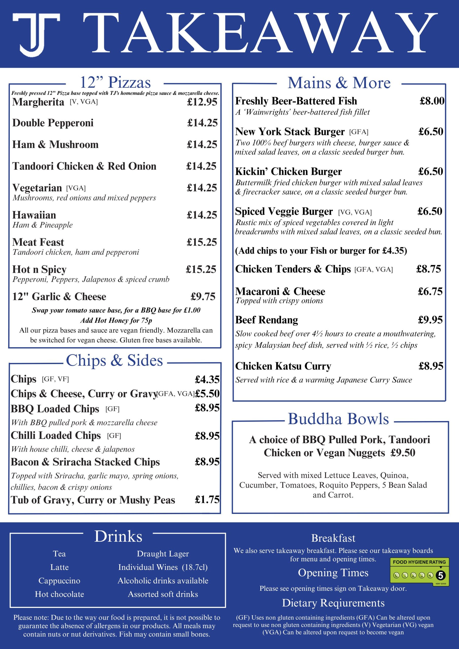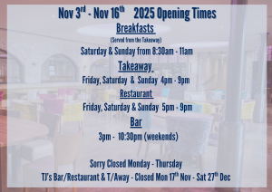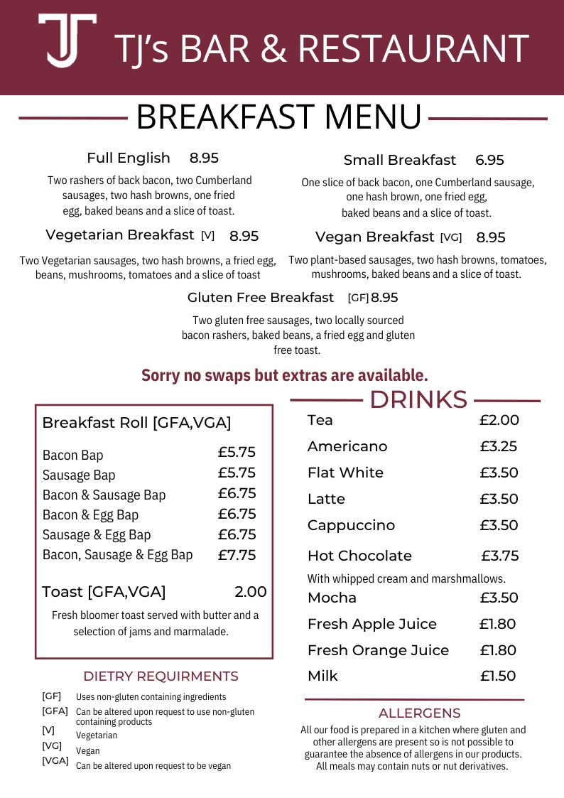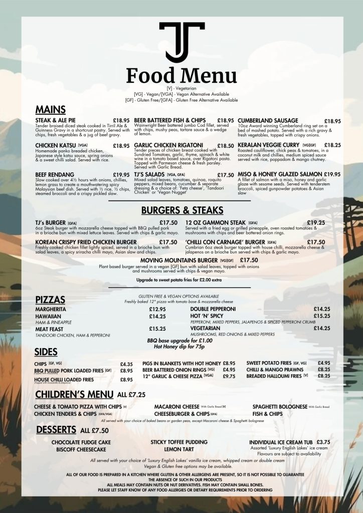 Download the TJ’s Bar and Restaurant app from the app store to order from the takeaway!.